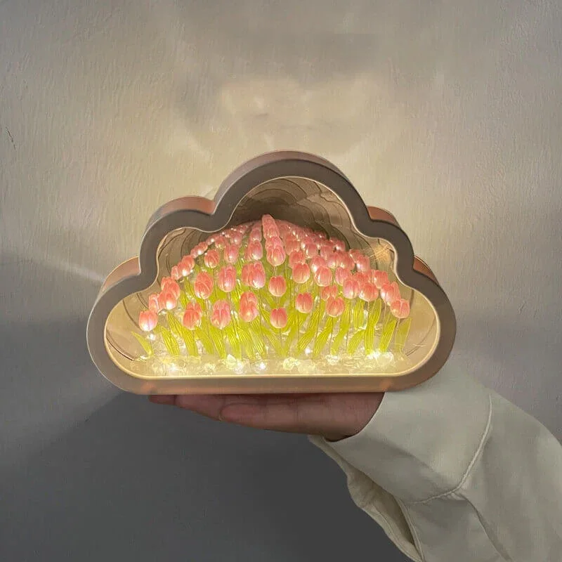 Le Cloud Mirror n'est pas qu'un simple reflet : c'est une fusion envoûtante d'art et de fonctionnalité. Son design unique en forme de nuage abrite un champ de tulipes infinies qui s'illuminent grâce à des LEDs, transformant votre espace en un havre de paix.