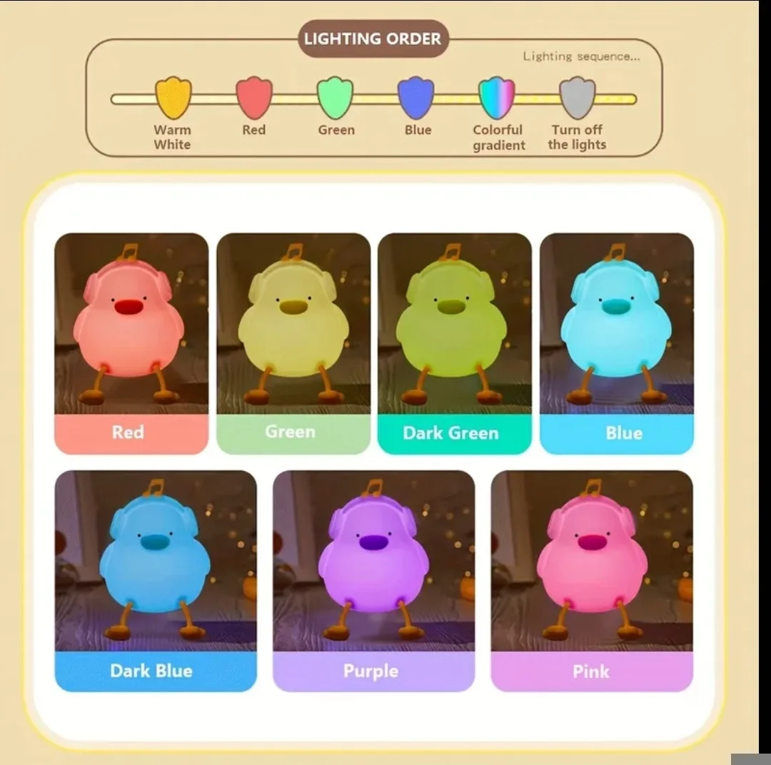 🎶 Musical Duck 🦆- 🌟 Lampe de nuit en silicone 🤗 RGB 7-Couleur 🌈 Rechargable 🔋